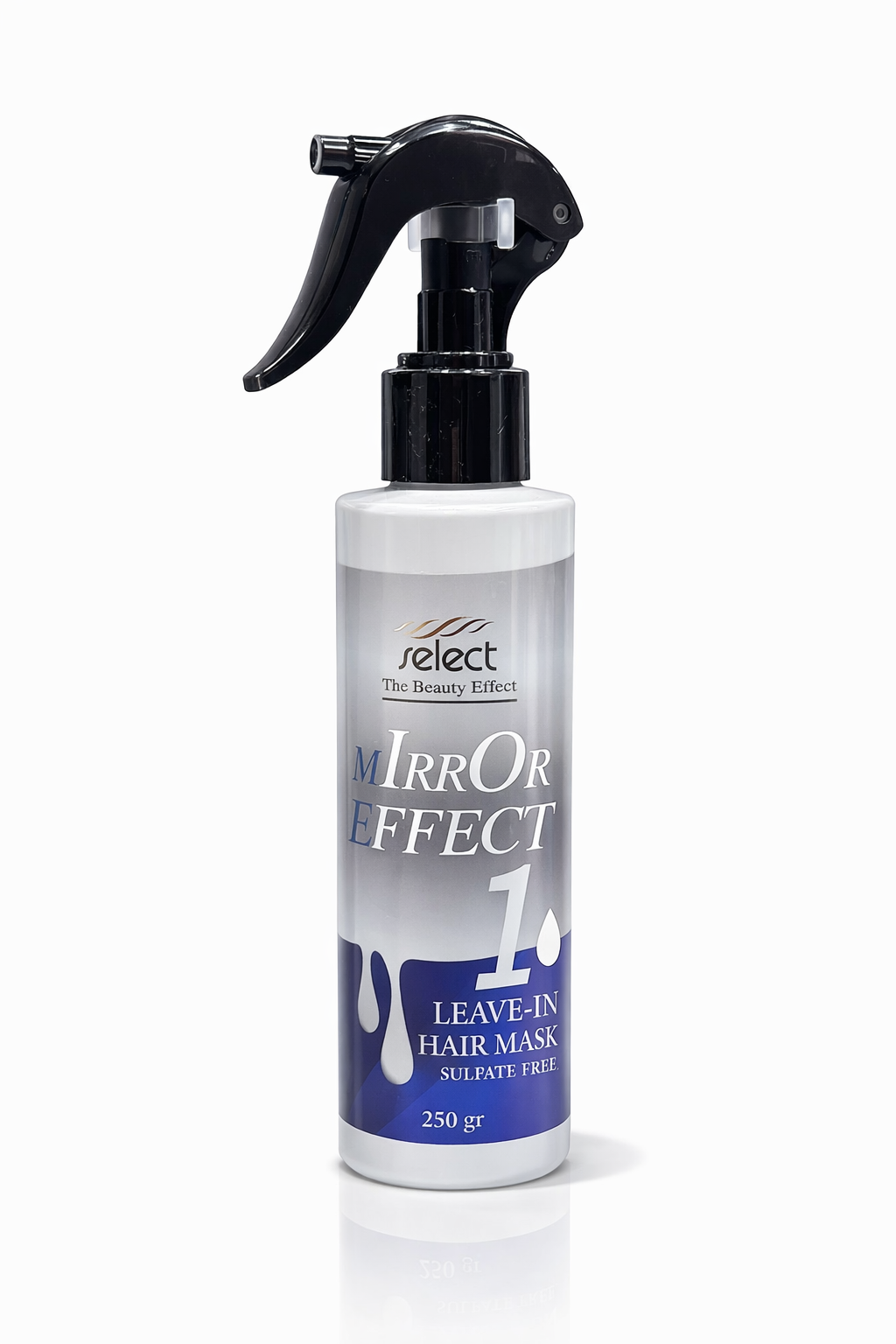 SELECT Mirror Effect Leave-In Hair Mask היא מסיכת שיער מקצועית ללא שטיפה וללא סולפטים, המיועדת לטיפוח יומיומי ולהענקת מראה חלק ומבריק – אפקט מראה.